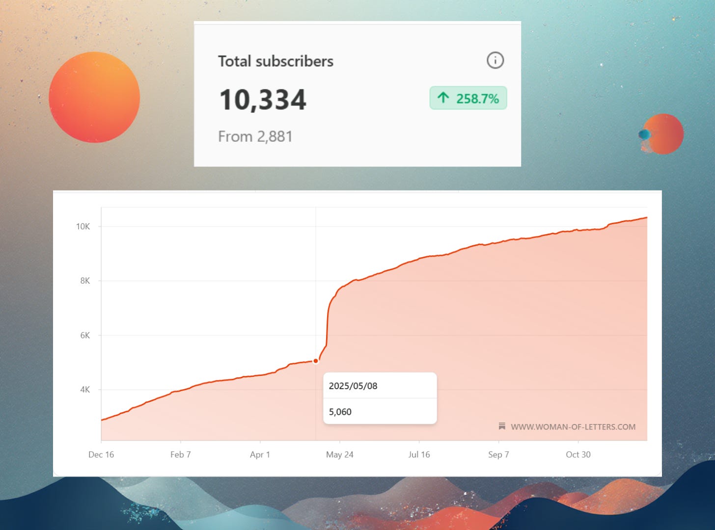 My newsletter’s growth was insane—my subscriber count increased 250% in one year. Most of that was due to The New Yorker mention. In the month after, I got 3,000 new subscribers. I don’t really think I can generalize much from that experience—certainly not enough to give advice to anyone else about how to replicate it.